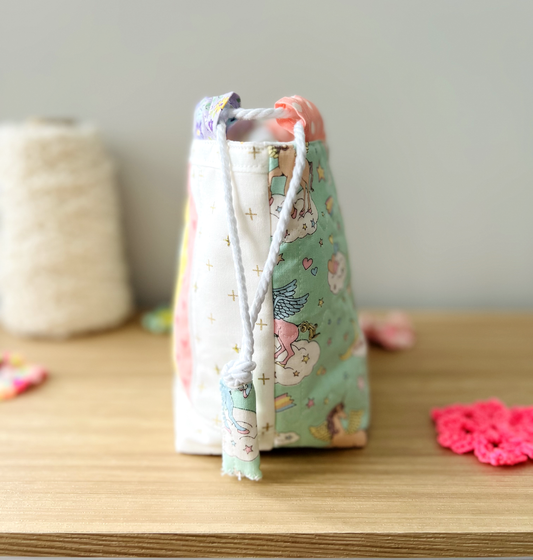 "Rainbows and Unicorns" Quilted Drawstring Pouch