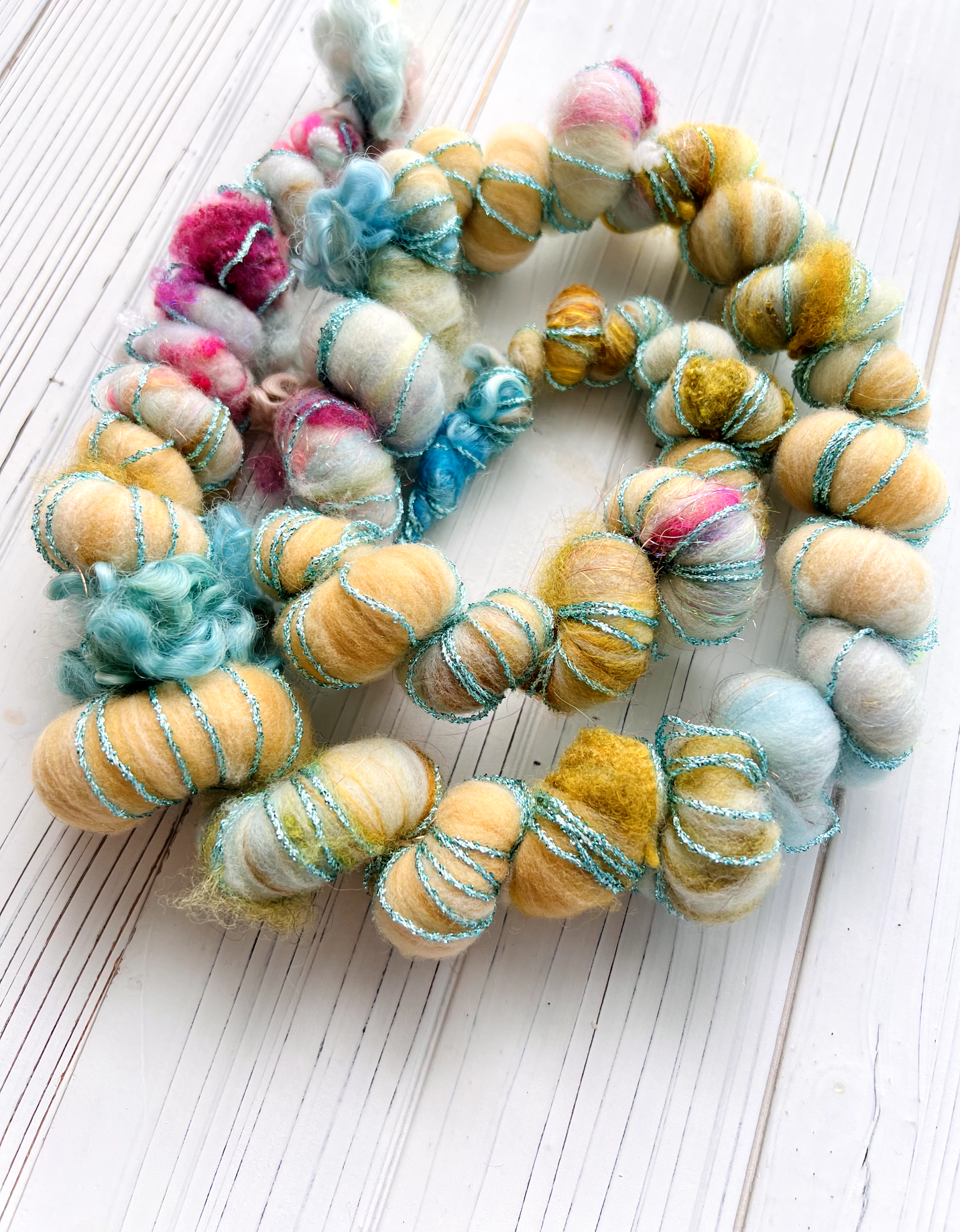 Drumcarder blended wool fibers mixed with novelty add ins for sparkle and wool locks