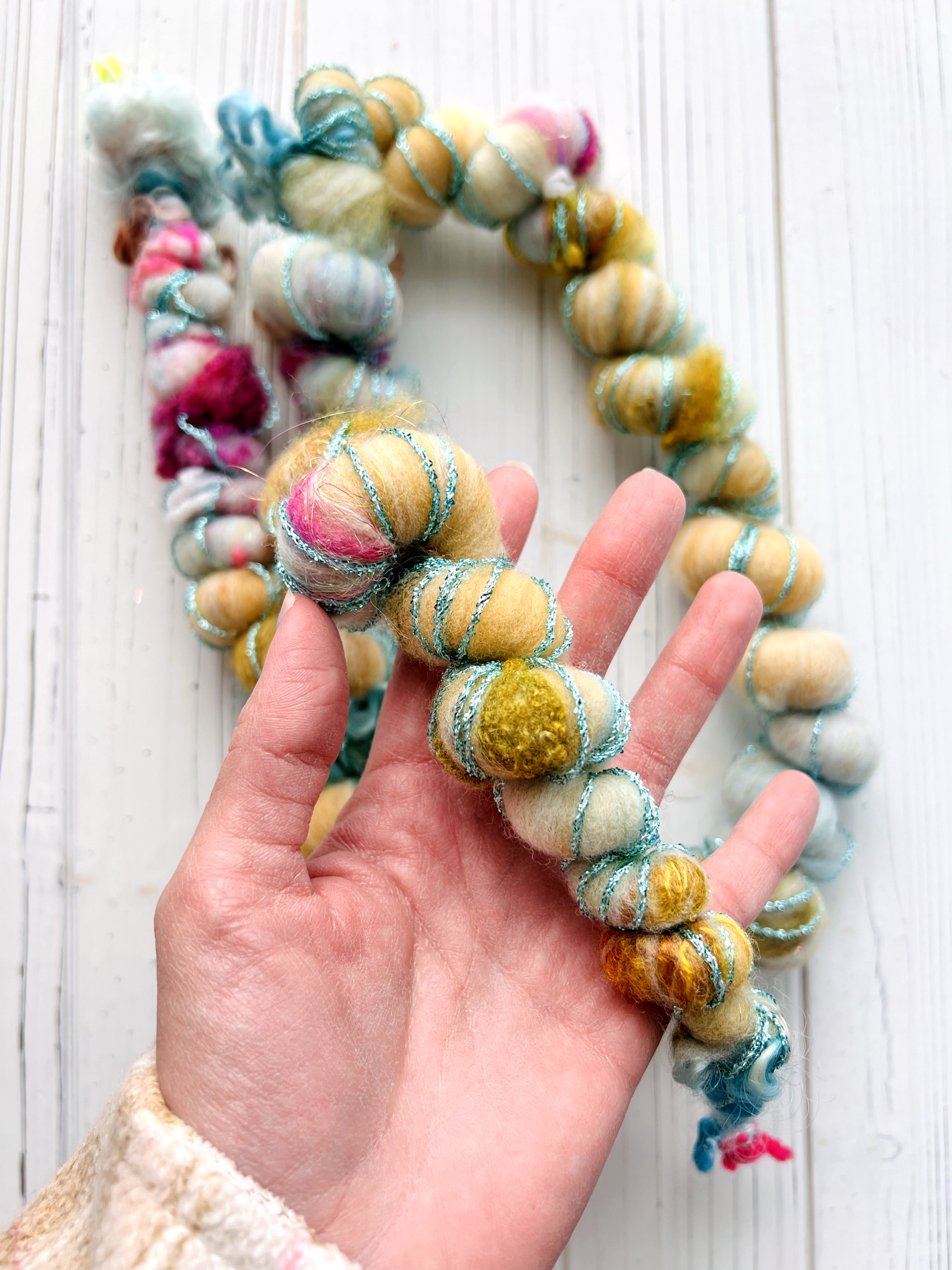 My Art yarns are made from batts I have carded with my drum carder. These yarns come from a smoke free / pet friendly home. Yarn that is wet finished is bathed in unscented plant based wool wash and the rest are steam set. My photos are edited to the best of my ability to represent true to life colors, but please note that monitor colors may vary.